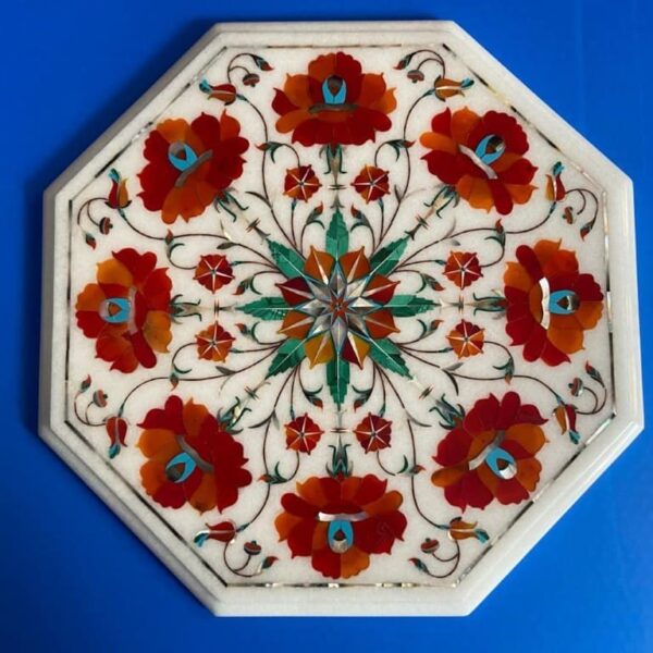 Artisanal Excellence: Handmade White Marble Inlay Art Tabletop Décor