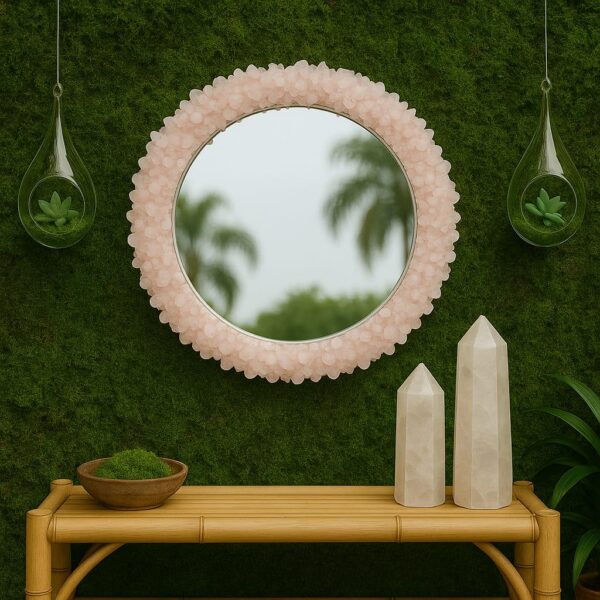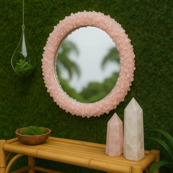 Our handcrafted Rose Quartz Mirror is more than just a reflection – it’s a symbol of self-love and emotional clarity. Designed to blend timeless beauty with natural healing properties, this mirror adds warmth, luxury, and spiritual harmony to any room.