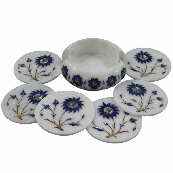 Adorn your home with elegance! This handmade coaster set features intricate marble inlay work with semi-precious stones, perfect for adding a touch of luxury to your decor. A thoughtful gift for friends and family, it showcases exceptional craftsmanship and attention to detail.