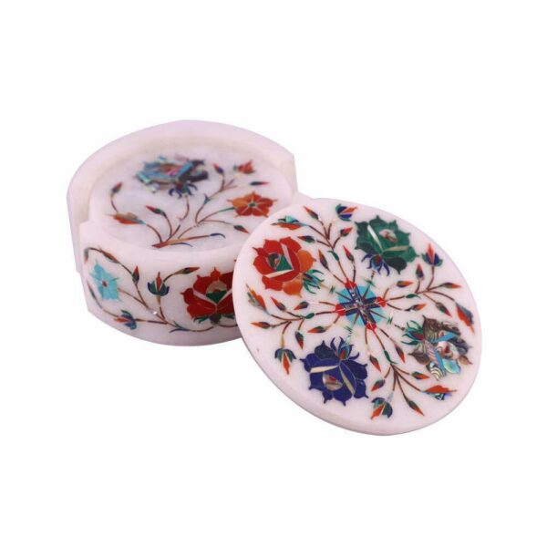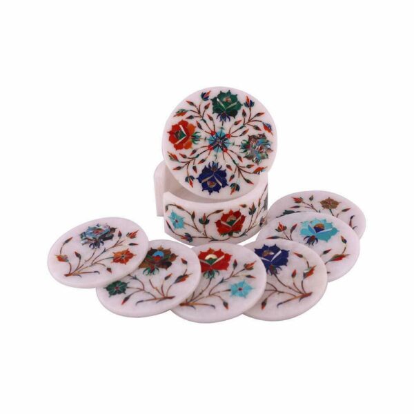 Adorn your home with elegance! This handmade coaster set features intricate marble inlay work with semi-precious stones, perfect for adding a touch of luxury to your decor. A thoughtful gift for friends and family, it showcases exceptional craftsmanship and attention to detail.