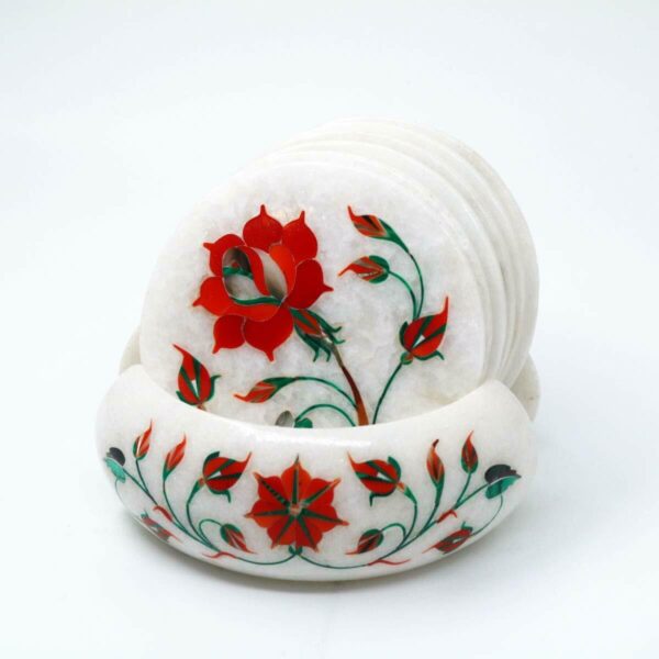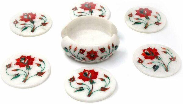 Adorn your home with elegance! This handmade coaster set features intricate marble inlay work with semi-precious stones, perfect for adding a touch of luxury to your decor. A thoughtful gift for friends and family, it showcases exceptional craftsmanship and attention to detail.