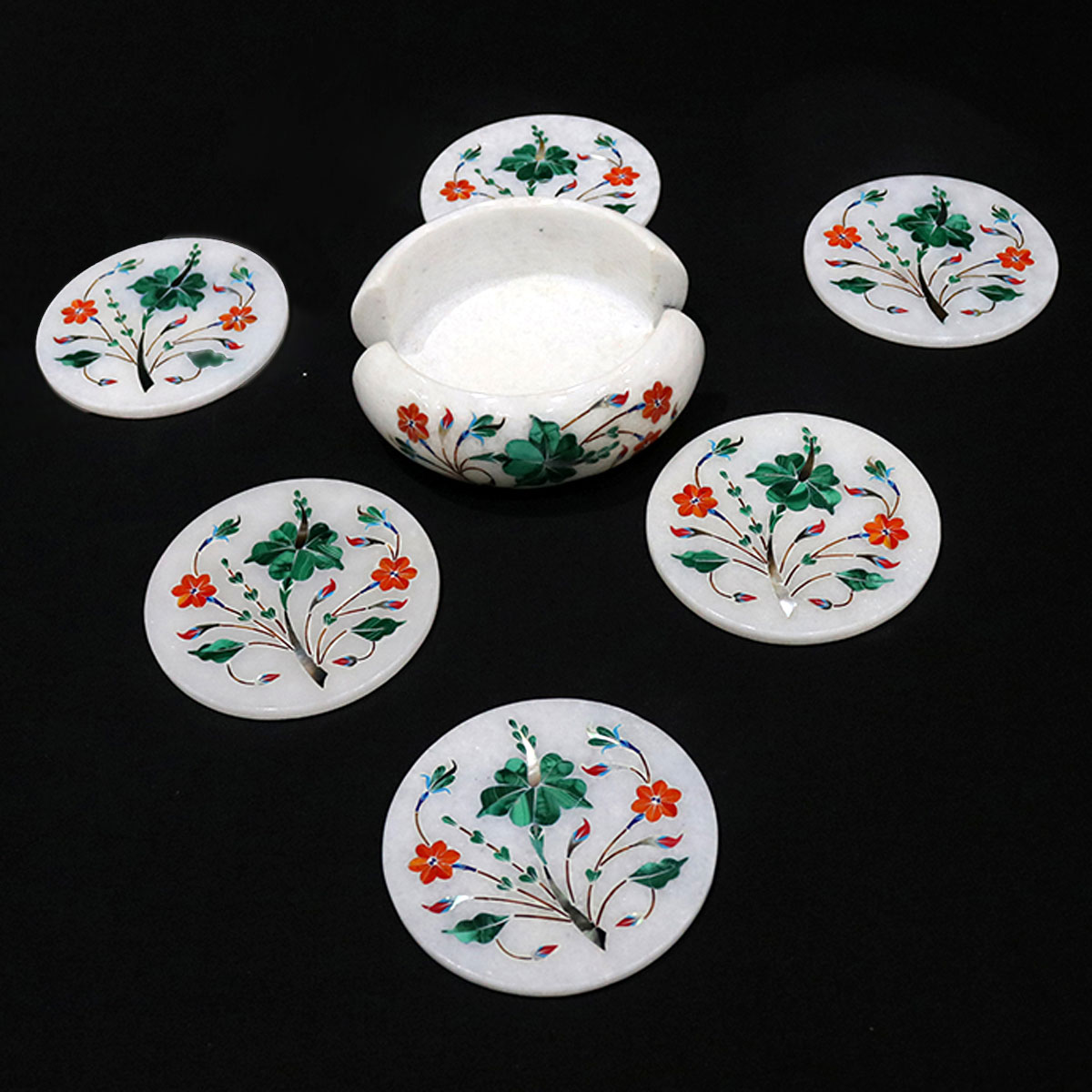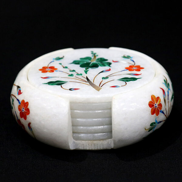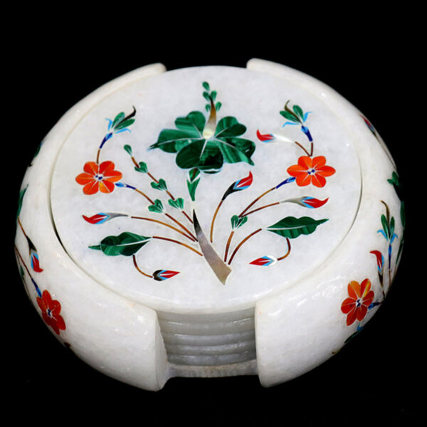 Adorn your home with elegance! This handmade coaster set features intricate marble inlay work with semi-precious stones, perfect for adding a touch of luxury to your decor. A thoughtful gift for friends and family, it showcases exceptional craftsmanship and attention to detail.