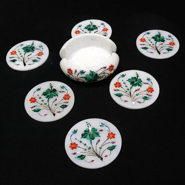 Marble Inlay Art Tea Coaster Set with Semi-Precious Stones Work Décor And Gifts