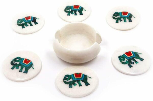Adorn your home with elegance! This handmade coaster set features intricate marble inlay work with semi-precious stones, perfect for adding a touch of luxury to your decor. A thoughtful gift for friends and family, it showcases exceptional craftsmanship and attention to detail.